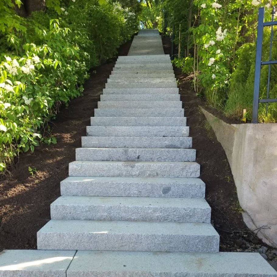 I detta projekt har vi anlagt en robust och stilren trappa i rå kilad granit, kombinerad med en gång av grå markplattor. En praktisk och estetisk lösning som både binder...